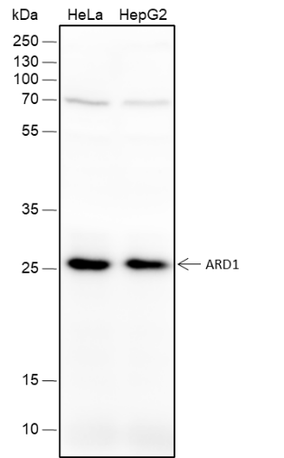 Catalytic subunit of the N-terminal acetyltransferase A (NatA) complex which displays alpha (N-terminal) acetyltransferase activity. Acetylates amino termini that are devoid of initiator methionine. The alpha (N-terminal) acetyltransferase activity may be important for vascular, hematopoietic and neuronal growth and development. Without NAA15, displays epsilon (internal) acetyltransferase activity towards HIF1A, thereby promoting its degradation. Represses MYLK kinase activity by acetylation, and thus represses tumor cell migration. Acetylates, and stabilizes TSC2, thereby repressing mTOR activity and suppressing cancer development. Acetylates HSPA1A and HSPA1B at 'Lys-77' which enhances its chaperone activity and leads to preferential binding to co-chaperone HOPX. Acetylates HIST1H4A. Acts as a negative regulator of sister chromatid cohesion during mitosis.