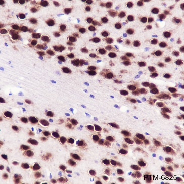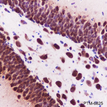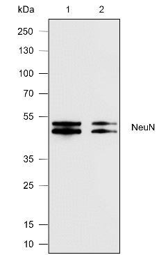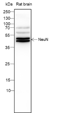 NeuN, also named as Fox-3 or RBFOX3, is a nuclear protein expressed in most post-mitotic neurons of the central and peripheral nervous systems. NeuN is not detected in Purkinje cells, sympathetic ganglion cells, Cajal-Retzius cells, INL retinal cells, inferior olivary, or dentate nucleus neurons. This neuronal protein was originally identified by immunoreactivity with a monoclonal antibody also called NeuN. Using MS-analysis, NeuN was later identified as the Fox-3 gene product. Fox-3 contains an RNA recognition motif and functions as a splicing regulator. Fox-3 regulates alternative splicing of NumB, promoting neuronal differentiation during development.