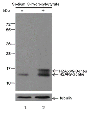 Specificity Anti-β-Hydroxybutyryl-Histone H2A/H2A.X (Lys9) Rabbit pAb detects histone H2A and H2A.X only when β-hydroxybutyrylated at Lys9.