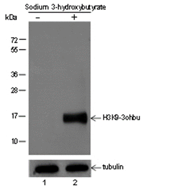 Histones are subject to a variety of enzyme catalyzed modifications, including acetylation, methylation, phosphorylation, ubiquitination, and numerous others. β-Hydroxybutyrylation of lysine (Kbhb) is a newly identified histone marker that is enriched in active gene promoters. Histone Kbhb marks are dramatically induced in response to elevated β-hydroxybutyrate levels in cultured cells and in livers from mice subjected to prolonged fasting or streptozotocin-induced diabetic ketoacidosis. Histone β-hydroxybutyrylation represents a new epigenetic regulatory mark that couples metabolism to gene expression, offering a new avenue to study chromatin regulation and diverse functions of β-hydroxybutyrate in the context of important human pathophysiological states, including diabetes, epilepsy, and neoplasia.