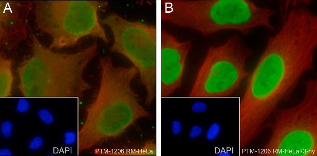 Description: The green color represents the positive signal observed with PTM-1206RM.
