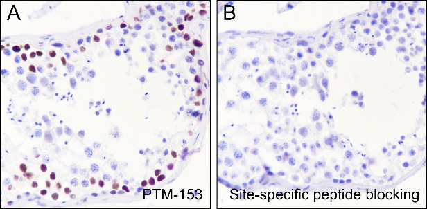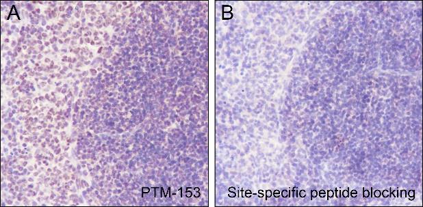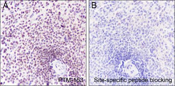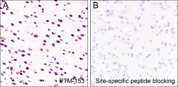 Description: The brown color represents the positive signal observed with PTM-153.