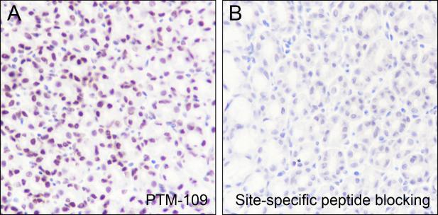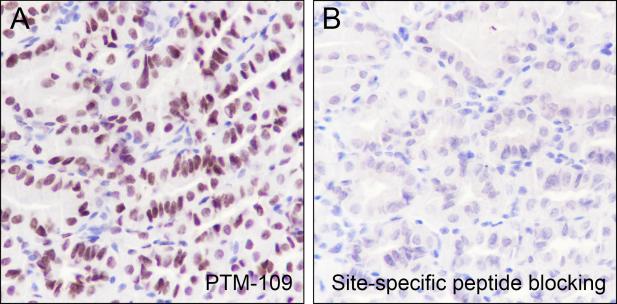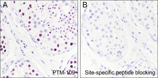 Description: The brown color represents the positive signal observed with PTM-109.
