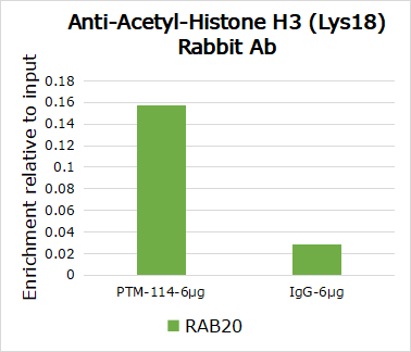 | Specificity | Anti-Acetyl-Histone H3 (Lys18) Rabbit pAb detects histone H3 only when it is acetylated at Lys18. This antibody has been shown to selectively recognize acetylated H3 peptide at Lys18, but not the structurally similar propionylated, crotonylated, or butyrylated H3 peptides at Lys18. |
