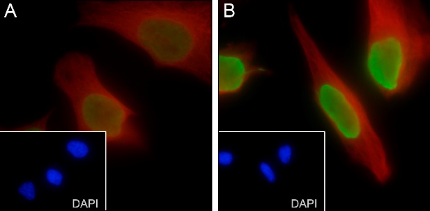 Samples: (A) HeLa cells; (B) HeLa cells treated with 1.65 μM trichostatin A for 4 hours
