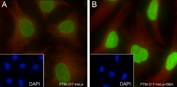 Cell line: (A) HeLa, (B) HeLa+ SBA (5mM, 24 hours)