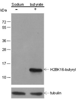 Histones are subjected to a variety of enzyme catalyzed modifications, including acetylation, methylation, phosphorylation, ubiquitylation, etc. Butyrylation of lysine is a newly identified reversible modification controlling chromosome structure and gene transcription. Lysine butyrylation is highly conserved in eukaryotic cells from worm to human. The unique structure and genomic localization of histone lysine butyrylation suggest that it is mechanistically and functionally different from histone lysine acetylation. Specifically, in both human somatic and rabbit male germ cell genomes, histone butyrylation marks either active promoters or potential enhancers. Butyrylation of histone H2B at Lys16 may play a vital role in the epigenetic modulation, including chromatin remodeling and DNA transcriptional regulation.