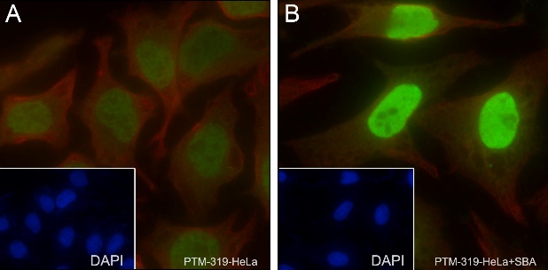 Description: The green color represents the positive signal observed with PTM-319