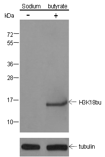 Histones are subjected to a variety of enzyme catalyzed modifications, including acetylation, methylation, phosphorylation, ubiquitylation, etc. Butyrylation of lysine is a newly identified reversible modification controlling chromosome structure and gene transcription. Lysine butyrylation is highly conserved in eukaryotic cells from worm to human. The unique structure and genomic localization of histone lysine butyrylation suggest that it is mechanistically and functionally different from histone lysine acetylation. Specifically, in both human somatic and rabbit male germ cell genomes, histone butyrylation marks either active promoters or potential enhancers. Butyrylation of histone H3 at Lys18 may play a vital role in the epigenetic modulation, including chromatin remodeling and DNA transcriptional regulation.