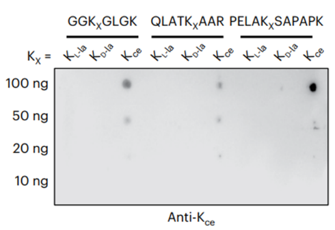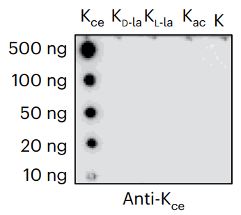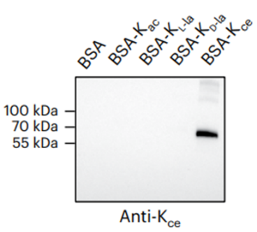 N epsilon-(carboxyethyl)lysine (CEL), one of the advanced glycation end products (AGEs), is a stable, nonenzymatic chemical modifications of protein lysine residues arising from glycation and oxidation. Kce can alter the structure and fuction of proteins, affecting their activity, stability, and interactions. This modification is closely related to the metabolic state of cells and may play an important role in metabolic stress and disease conditions. Kce has been reported to be associated with various pathological processes, including diabetic complications, atherosclerosis, and neurodegenerative diseases. Notably, thelevels of Kce are significantly elevated in diabetic complications and cardiovascular diseases.
