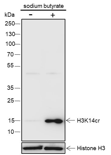 Specificity Anti-Crotonyl-Histone H3 (Lys14) Rabbit mAb detects histone H3 only when it is crotonylated at Lys14.