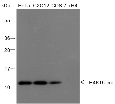 Histones are subject to a variety of enzyme catalyzed modifications, including acetylation, methylation, phosphorylation, ubiquitylation, etc. Crotonylation of lysine is a newly identified reversible modification controlling chromosome structure and gene transcription. The reversible lysine crotonylation has been well demonstrated in eukaryotic histones from worm to human. The unique structure and genomic localization of histone lysine crotonylation suggest that it is mechanistically and functionally different from histone lysine acetylation. Specifically, in both human somatic and mouse male germ cell genomes, histone crotonylation marks either active promoters or potential enhancers. Crotonylation of histone H4 at Lys16 may play a vital role in the epigenetic modulation, including chromatin remodeling and DNA transcriptional regulation.