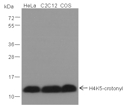 Histones are subject to a variety of enzyme catalyzed modifications, including acetylation, methylation, phosphorylation, ubiquitylation, etc. Crotonylation of lysine is a newly identified reversible modification controlling chromosome structure and gene transcription. The reversible lysine crotonylation has been well demonstrated in eukaryotic histones from worm to human. The unique structure and genomic localization of histone lysine crotonylation suggest that it is mechanistically and functionally different from histone lysine acetylation. Specifically, in both human somatic and mouse male germ cell genomes, histone crotonylation marks either active promoters or potential enhancers. Crotonylation of histone H4 at Lys5 may play a vital role in the epigenetic modulation, including chromatin remodeling and DNA transcriptional regulation.