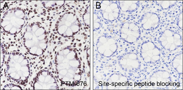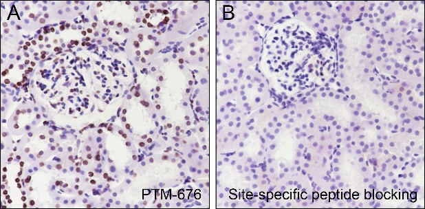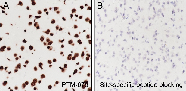 Description: The brown color represents the positive signal observed with PTM-676
