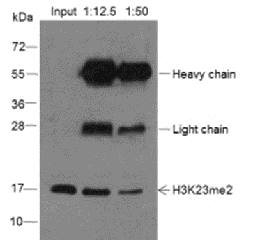 Specificity Anti-Dimethyl-Histone H3 (Lys23) Mouse mAb detects histone H3 only when it is Dimethylated at Lys23.