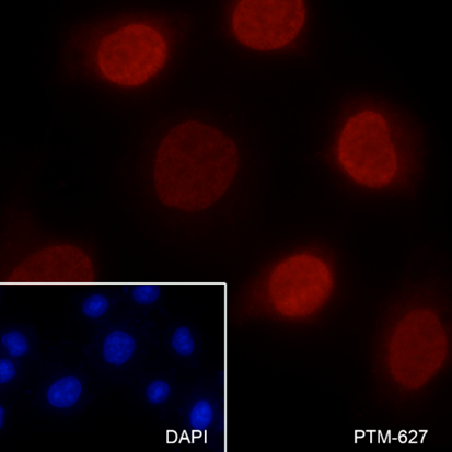 Description: The red color represents the positive signal observed with PTM-627