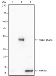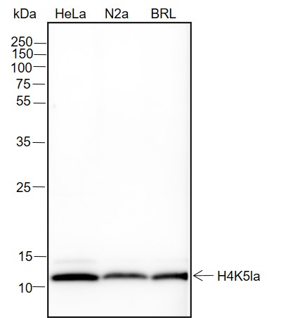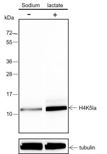 Specificity Anti-L-Lactyl-Histone H4 (Lys5) Rabbit mAb detects histone H4 only when it is L-lactylated at Lys5.