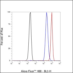 Isotype control: Rabbit monoclonal IgG (Blue line).
