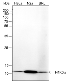 | Specificity | Anti-L-Lactyl-Histone H4 (Lys5) Rabbit pAb detects histone H4 only when it is L-lactylated at Lys5. |