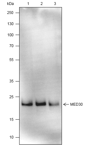 Mediator of RNA polymerase II transcription subunit 30 (MED30) is an enzyme, encoded by the MED30 gene in human. It represents subunit Med30 of the Mediator complex and is metazoan-specific with no homologues in yeasts. It is a coactivator involved in the transcription regulation of nearly all RNA polymerase II-dependent genes. Mediator functions as a bridge to convey information from gene-specific regulatory proteins to the basal RNA polymerase II transcription machinery.