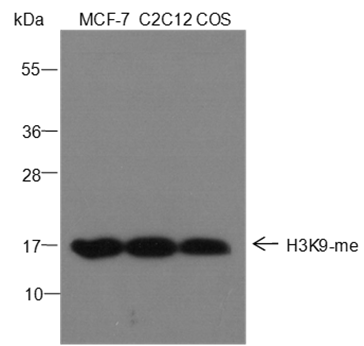 | Specificity | Anti-Monomethyl-Histone H3 (Lys9) Mouse mAb detects histone H3 only when it is L-Monomethyl Lys9. |