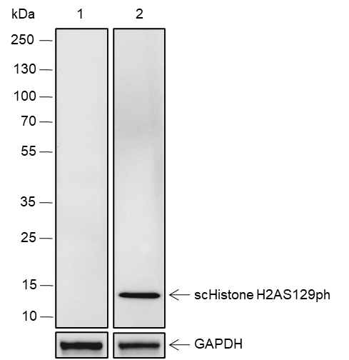 Histone post-translational modifications (PTMs) are key mechanisms of epigenetics that modulate chromatin structures, termed as “histone code”. The PTMs on histone including acetylation, methylation, phosphorylation and novel acylation directly affect the accessibility of chromatin to transcription factors and other epigenetic regulators, altering genome stability, gene transcription, etc. Histone phosphorylation occurs on serine, threonine and tyrosine residues on the aminoterminal of core histones. This histone mark plays roles in DNA repair,transcription and chromatin remodeling. The best-known histone phosphorylation site is histone variant H2A.x Ser139ph, which were reported to be involved in the response to DNA damage. Histone phosphorylation is mainly involved in processes during both mitosis and meiosis. Many kinases and phosphatases regulate histone phosphorylation levels. H2A(X) Ser 129 is essential for survival in the presence of topoisomerase-1-mediated DNA damage.
