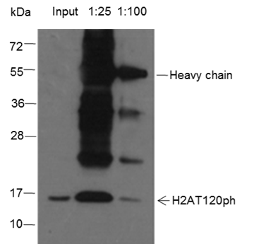 Purity Antibodies are purified by Protein A conjugated agarose followed by phosphorylated H2A (Thr120) peptide affinity chromatography.