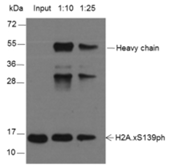 Histones are subjected to a variety of enzyme catalyzed modifications, including acetylation, methylation, ubiquitylation and newly discovered succinylation, crotonylation and 2-hydroxyisobutyrylation, etc. These modifications have a direct effect on the accessibility of chromatin to transcription factors and, therefore, on gene expression. Histone H2A.X is a ubiquitously expressed variant of histone H2A and phosphorylation of histone H2A.x at Ser139 (termed γ-H2AX) is located in a unique C-terminal region and regulated by various kinases, including the ataxia telangiectasia-mutated (ATM) protein, the AT and Rad3-related protein, and DNA-dependent protein kinase, all of which were reported to be involved in the responses of mammalian cells to DNA double-strand breaks.