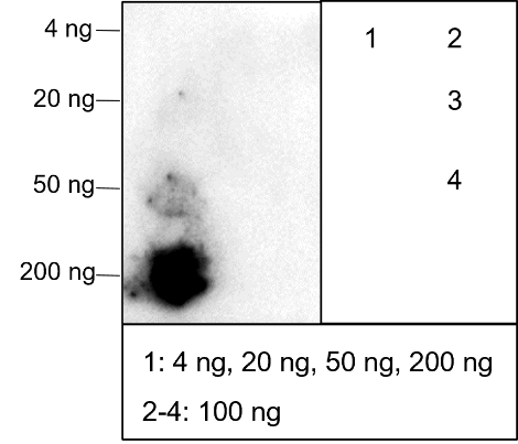 | Storage | Centrifuge the vial at 12,000 x g for 20 seconds before reconstitution. Add 100 μL of sterile deionized water to achieve a final antibody concentration of 1 mg/ml. After reconstitution, the antibody will be in 1X PBS. Aliquot and store at -80°C, and avoid freeze/thaw cycles. |