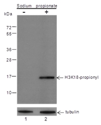 Histones are subject to a variety of enzyme catalyzed modifications, including acetylation, methylation,phosphorylation, ubiquitylation, etc. Lysine propionylation (Kprop) is structurally similar to lysine acetylation, is a newly identified reversible modification controlling protein activity. Lysine propionylation is abundant in both prokaryotes and eukaryotes and has been found in wide ranges of proteins including histones and non-histone substrates, such as p53. Similar to acetylation of histone H3 at Lys12, propionylation of histone H3 at Lys18 may play a vital role in the epigenetic modulation, including chromatin remodeling and transcriptional regulation.