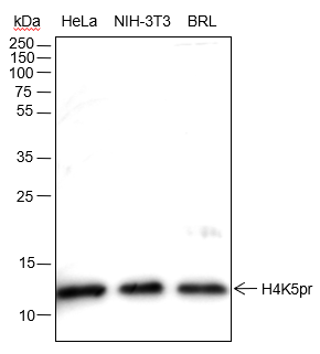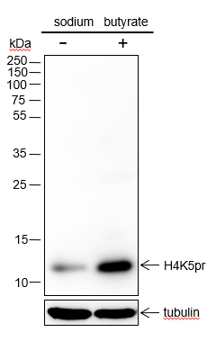 Histones are subject to a variety of enzyme catalyzed modifications, including acetylation, methylation, phosphorylation, ubiquitylation, etc. Lysine propionylation (Kprop) is structurally similar to lysine acetylation, is a newly identified reversible modification controlling protein activity. Lysine propionylation is abundant in both prokaryotes and eukaryotes and has been found in wide ranges of proteins including histones and non-histone substrates, such as p53. Similar to acetylation of histone H4 at Lys5, propionylation of histone H4 at Lys5 may play a vital role in the epigenetic modulation, including chromatin remodeling and transcriptional regulation.