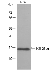 Histones are subject to a variety of enzyme catalyzed modifications including acetylation, phosphorylation, ubiquitylation etc. Lysine succinylation is a recently identified novel protein post-translational modification (PTM). Lysine succinylation is evolutionarily conserved and abundantly present in proteins in both prokaryotic and eukaryotic cells, suggesting its roles in regulating cellular physiology. This antibody will facilitate studies of lysine succinylation biology by identifying its substrates and studying its function.