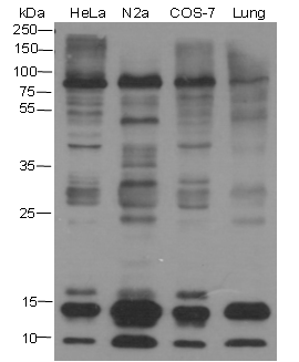 Small ubiquitin-related modifier 1, 2 and 3 (SUMO-1, 2 and 3) are members of the ubiquitin-like protein family. The functions of the small ubiquitin-related modifier protein is similar to ubiquitin in that it is bound to target proteins as part of a post-translational modification system. It can be covalently attached to proteins as a monomer or a lysine-linked polymer. Covalent attachment via an isopeptide bond to its substrates requires prior activation by the E1 complex SAE1-SAE2 and linkage to the E2 enzyme UBE2I and can be promoted by E3 ligases such as PIAS1-4, RANBP2 or CBX4. Ubiquitin predominantly regulates degradation of its target. In contrast, SUMO-1 is conjugated to RanGAP, PML, p53 and IκB-α to regulate nuclear trafficking, formation of subnuclear structures, transcriptional activity, and protein stability. SUMO-2/3 forms poly-(SUMO) chains, which is conjugated to topoisomerase II and APP, and regulates chromosomal segregation and cellular responses to environmental stress.