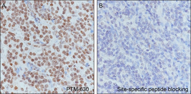 Description: The brown color represents the positive signal observed with PTM-630