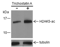 Specificity Anti-Acetyl-Histone H2A (Lys5) Rabbit pAb detects histone H2A only when it is acetylated at Lys5. This antibody has been shown to selectively recognize acetylated H2A peptide at Lys5, but not the acetylated peptide at Lys9 or unmodified peptide.