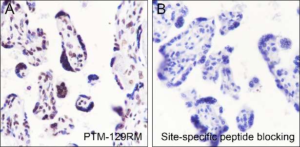 Description: The brown color represents the positive signal observed with PTM-129RM.