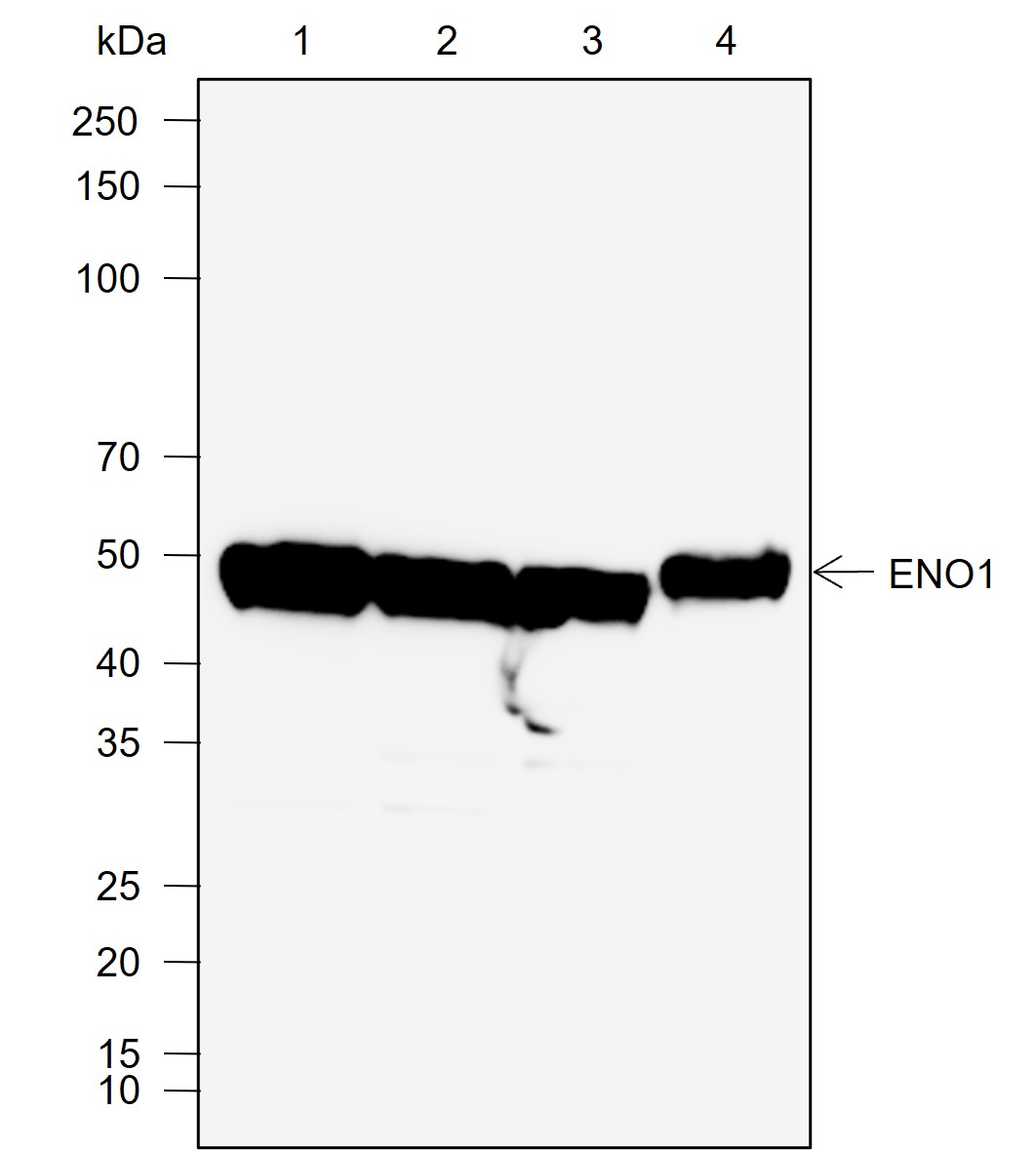 ENO1, also named as NNE, ENO1L1, MBPB1 and MPB1, belongs to the enolase family. It is a multifunctional enzyme that, as well as its role in glycolysis, plays a part in various processes such as growth control, hypoxia tolerance and allergic responses. ENO1 may also function in the intravascular and pericellular fibrinolytic system due to its ability to serve as a receptor and activator of plasminogen on the cell surface of several cell-types such as leukocytes and neurons. It stimulates immunoglobulin production.