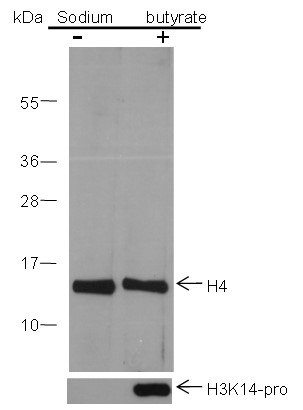 Histones are a family of basic proteins that form the core of the nucleosome – the fundamental structural unit of chromatin. In a single nucleosome, core histone proteins H2A, H2B, H3, and H4 form an octamer around which the DNA is tightly wrapped. Histone proteins not only serve to compact chromosomal DNA but also play vital roles in the dynamic and long-term regulation of genes by a wide variety of post-translational modifications (PTMs). These PTMs including acetylation, methylation, phosphorylation, and novel acylations directly affect the accessibility of chromatin to transcription factors and other epigenetic regulators, altering genome stability and gene transcription. Histone H4 is primarily acetylated at Lys5, 8, 12, and 16, and methylated at Lys20.