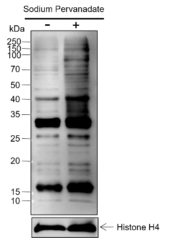 Tyrosine phosphorylation is one of the major means of cell signaling transduction in multiple pathophysiological conditions regulated by tyrosine kinase activities. In cancer, unregulated tyrosine kinase activity can drive tumor malignancy and formation by generating inappropriate proliferation and survival signals. Antibodies that specifically recognize phosphorylated tyrosine residues have proved to be invaluable to these studies. The anti-phosphotyrosine antibody (clone 3B6) developed by PTM Biolabs, Inc. provides an exceptionally sensitive tool for studying tyrosine phosphorylation and its kinase activities in biomedical and preclinic studies as well as high throughput drug discovery.