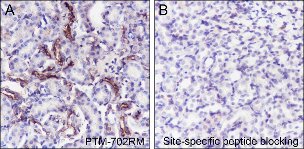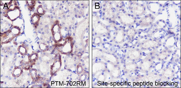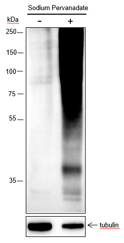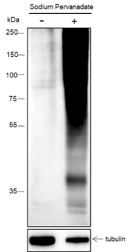 Tyrosine phosphorylation is one of the major means of cell signaling transduction in multiple pathophysiological conditions regulated by tyrosine kinase activities. In cancer, unregulated tyrosine kinase activity can drive tumor malignancy and formation by generating inappropriate proliferation and survival signals. Antibodies that specifically recognize phosphorylated tyrosine residues have proved to be invaluable to these studies. The anti-phosphotyrosine antibody (clone 3B6) developed by PTM Biolabs, Inc. provides an exceptionally sensitive tool for studying tyrosine phosphorylation and its kinase activities in biomedical and preclinic studies as well as high throughput drug discovery.