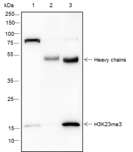 | Specificity | Anti-Trimethyl-Histone H3 (Lys23) Rabbit mAb detects histone H3 only when it is Trimethyl at Lys23. |